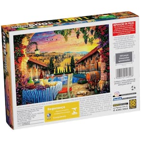 Este quebra-cabeça de 500 peças mini, apresenta uma mesa lindamente posta para dois aos pés dos vinhedos da Toscana. Relaxe sob o brilho do pôr do sol e desfrute de uma taça do requintado vinho italiano, arte de Dominic Davison. Sobre o artista: Dominic Davison nasceu em Londres em 1972 e vive em Buckinghamshire, onde se inspira para muitas de suas cenas idílicas e românticas. Dominic cria arte há muitos anos e durante esse tempo construiu uma base de fãs leais, que agora se estende por todo o mundo. Suas influências são variadas e incluem mestres paisagistas como Barend, Cornelis, Koekkoek, Ruisdael e Constable. Tamanho do puzzle 30,0 x 22,0 cmQuantidade de peças 500A partir de 10 anos Homologação Inmetro: CE-BRI/IQB 006352 52216/18-025