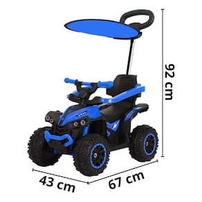 Mini quadriciclo elétrico infantil 6v com capota e empurrador bw370 Cor: azul Quadriciclo elétrico com empurrador e cobertura 6v
