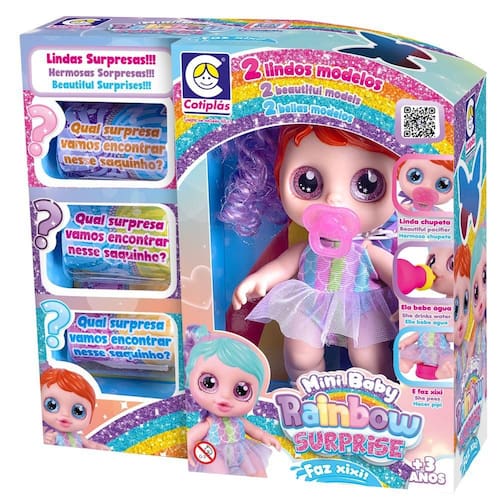 A Boneca Mini Rainbow Surprise permite que as crianças soltem a imaginação e se divirtam em diversas situações, criando histórias incríveis e vivendo momentos únicos de brincadeira. Além disso, a possibilidade de fazer xixi traz uma experiência realista e lúdica para a interação com a boneca.