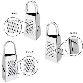 Conteúdo da embalagem: 1 Mini ralador de 3 faces em aço inox.