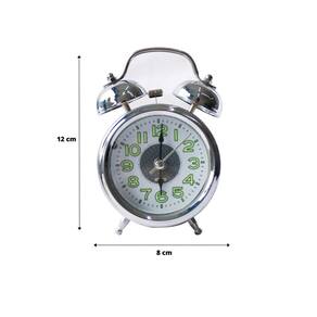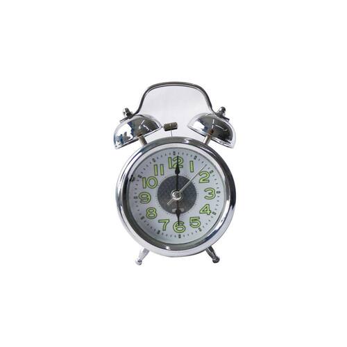 MINI RELÓGIO DESPERTADOR CONTÍNUO DE METAL DE MESA PRATA 12CM - MG2911.