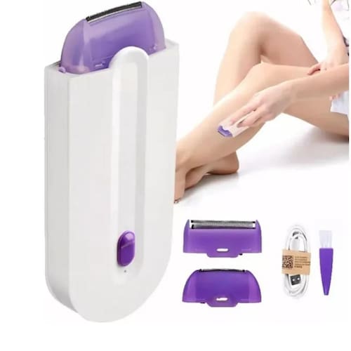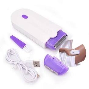 Remove os pelos sem dor Discreto e portátil Recarregável, prático e simples de usar Apropriado para depilação facial ou corporal Aciona apenas quando em contato com a pele