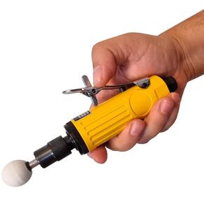 - Marca: Dremax - Modelo: MRP01 - Pressão de Ar: 90psi - Rotação: 22.000 rpm - Entrada de ar: 1/4 - Consumo: 4 CFM - Pinças para Hastes de 1/8 3,18mm e 1/4 6,36mm - Indicada para operações de desbaste e acabamento com o auxílio de pontas montadas. - Mantenha a ferramenta constantemente lubrificada e utilize sempre o regulador de pressão e o lubrificador de linha com óleo pneumático. - Possui corpo em alumínio com cobertura emborrachada, proporcionando maior resistência e conforto durante o manuseio. - Acompanha uma prática maleta para transporte. - Confeccionado com altíssima qualidade e excelente acabamento - Gatilho com trava de segurança - Ferramenta de qualidade superior - Dimensões da embalagem: 23 x 20 x 6cm - Peso bruto: 900 gramas - Garantia: 90 dias