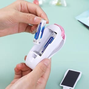As melhores promoções em um só lugarVocê compra o mais barato aquiCompre hoje agoraMini seladora de embalagem plástica portátil a pilha.Mini seladora para fechar as embalagens de salgadinhos e outras embalagens plásticas.Conserva melhor os seus alimentos.Possui imã na parte inferior para pode ser deixado em local de fácil acesso como na porta da geladeira.Aquecimento rápido, aquece em 3 segundos.Dimensões do produto axlxp : 10x4x4,5cmAlimentação: 2 pilhas aa não inclusas Conteúdo do pacote:1 x seladora portátil Marca: Lojabox