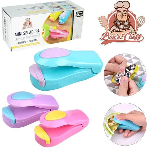 Mini seladora magnética para lacrar embalagem a pilha Informações adicionais: Ean: 7899866280687 Validade: indeterminada Alimentação: 2 pilhas aa não inclusas Tamanho aproximado da seladora: 10x3,5cm Tamanho aproximado da caixa: a:4,5xl:10,5xp:4cm Peso aproximado: 45g Tipo de produto: mini seladora magnetica para lacrar embalagem bons cheff na caixa Cor: colorido Composição: plastico e componentes eletronicos Marca: Bons Cheff