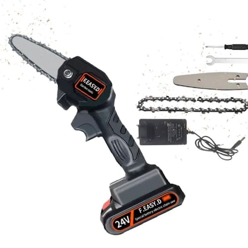Transforme suas atividades de jardinagem e corte com a mini serra elétrica 24v portátil bivolt. Projetada para proporcionar uma experiência ergonômica e confortável, esta motosserra é perfeita para cortes e podas em qualquer lugar, especialmente em áreas de difícil acesso. Com um motor escovado potente, garante um desempenho eficiente e rápido, minimizando o cansaço nas mãos. Ideal para serviços domésticos, jardinagem e podas simples, a mini serra elétrica oferece praticidade e mobilidade sem a necessidade de arrastar fios, graças à sua bateria inclusa.