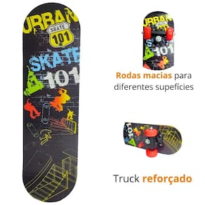 Mini skate brinquedo infantil dm radical jr. Para iniciantes suporta até 30 kg dmr6306 Estampa: 101 Os skates da marca dm radical são de produtos resistentes e de extrema qualidade. Eles já chegam montados e completos, com peças selecionadas e testadas, construindo um produto em perfeito estado, para que você tenha a melhor experiência possível durante a prática desse esporte tão apaixonante. Além disso, o skate possui um design descolado, um estilo despojado e um acabamento incrível, com lindas estampas para que você ande de skate no estilo. O peso máximo suportado do skate é de até 30 kg. Garanta já o seu skate dm radical, a diversão que contagia. Informações importantes: - marca: dm radical - modelo: skate infantil jr. - indicado para crianças acima de 06 anos - material: madeira e plástico - skate completo montado - dimensões: 43,5 cm - peso: 0,800 kg - rodinhas de pvc: 48 mm - suporta até 30 kg Porque comprar com a imports - enviamos em até 24 horas; - produto de ótima qualidade; - produto testado e muito bem embalado para chegar em perfeito estado; - foco total no cliente. Tag: skate, skateboard, shape, semi profissional, esporte, infantil, crianças, para os pequenos, radical, dm, esportes, fitness, cruiser, lazer, diversão, presentes, sem igual, truck já montado, para você.