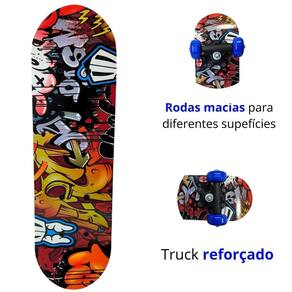 Mini skate infantil estampado radical até 30 kg Desenho: grafite Para os momentos de diversão e lazer, o mini skate infantil é o companheiro ideal. Ele é perfeito para crianças que desejam iniciar no mundo do skate com segurança e diversão. Com capacidade para suportar até 30 kg, ele oferece a estabilidade e resistência necessárias para os pequenos skatistas explorarem suas habilidades. Ideal para crianças a partir de 3 anos, o mini skate infantil é o companheiro para momentos de lazer e aprendizado. Incentive o equilíbrio, a coordenação e a prática de atividades ao ar livre, com seu designer leve e compacto você pode levar para as aventuras em diferentes lugares, ele conta com um shape de madeira o que torna o skate ainda mais resistente, não perca mais tempo e garanta já o seu Por que comprar com a imports - enviamos em até 24 horas; - produto de ótima qualidade; - produto testado e muito bem embalado para chegar em perfeito estado; - foco total no cliente. Informações importantes: - marca: art brink - modelo: mini skate infantil - material: plástico, eva, adesivo e silicone - medidas: 42x12 cm - peso: 0,775 - suporta até 30 kg - tamanho ideal para crianças, garantindo conforto e segurança - deck antiderrapante para maior aderência durante o uso - design divertido e colorido, perfeito para incentivar o aprendizado Marca: Não Informado