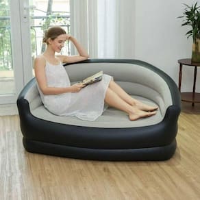 Mini Sofá 2 Lugares Inflável Portátil Macio E Prático É a solução perfeita para quem busca conforto, praticidade e versatilidade em qualquer ambiente. Com dimensões de 120?cm de comprimento, 75?cm de largura e 60?cm de altura, ele acomoda confortavelmente até duas pessoas, sendo ideal para momentos de descanso em casa, no camping, na praia ou em áreas externas. Produzido em PVC reforçado com acabamento aveludado, oferece uma superfície macia ao toque, resistente à água e fácil de limpar. Seu design ergonômico, com encosto elevado e assento amplo, garante suporte adequado para o corpo, proporcionando uma experiência de uso aconchegante e relaxante. O sofá conta com válvulas de inflagem rápida, permitindo que seja inflado ou esvaziado em poucos minutos, sem complicações. Leve e dobrável, é fácil de transportar e armazenar, ideal para quem precisa de uma opção de assento prática, confortável e que se adapta a diferentes situações. Com capacidade de até 100?kg, ele é perfeito para quem deseja aliar mobilidade e conforto com um toque moderno e funcional no dia a dia.