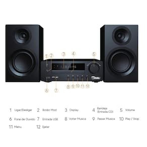 O Mini System SS-002 também é extremamente versátil. Ele roda CDs e MP3s, permitindo que você aproveite sua coleção de música da maneira que preferir. Além disso, com suas opções de conectividade Bluetooth, para você pode sincronizar seus dispositivos favoritos para uma experiência de audição personalizada.