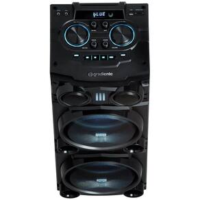 Caracteristicas: Marca: Gradiente Modelo: GDB10M Potência: 1200 Watts Rádio FM: Não Bluetooth: Sim Display: Digital Conexão USB: Sim Entrada auxiliar: Sim Controle remoto: Sim Controle de iluminação: LEDs rítmicos Alto falantes: 2 Woofers 10, 1 Mid-Range 3 e 1 Tweeter 1,5 Alça para transporte: Sim Consumo de energia: 1,2 kW/h Rodas: Sim Mais informações: Entrada e saída RCA Funções: Gradiente Connect e função passa pasta Entrada para cartão de memória: Sim Entrada para microfone: Sim, entrada P10 Painel de Controle: Sim Cabo: 145cm