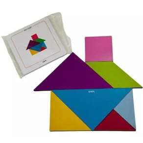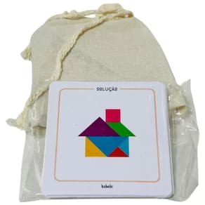 Contém 1 tangram com 7 peças, 1 saco de pano e manual.