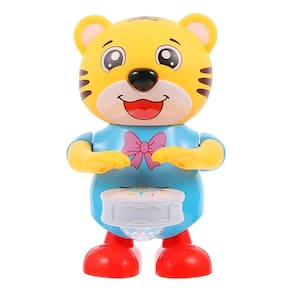 Ele toca músicas animadas enquanto dança, criando uma experiência