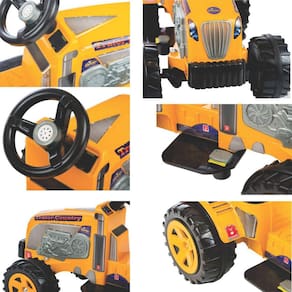 Trator Country Amarelo Elétrico 6v Biemme 319Sabe aquele presente para o seu filho ou sua filha que vai deixar ele(a) pulando de felicidade? Este presente é o Trator Country Amarelo Elétrico 6v da Biemme! Este incrível tratorzinho infantil vai fazer a alegria da sua criança! Este é o brinquedo mais procurado e o mais vendido aqui na Maçã Verde Baby... um presente INESQUECÍVEL e que o seu filho ou sua filha vai AMAR! Toda criança sonha em ter um carrinho elétrico! Imagine só quantas brincadeiras são possíveis em nosso Trator Country Amarelo Elétrico 6v da Biemme! O Mini Trator Elétrico Country da Biemme é o brinquedo perfeito que vai deixar o amor da sua vida extremamente feliz e contente! Este tratorzinho vai ser o novo xodó, amigo inseparável do seu filho ou de sua filha, a partir dos 3 anos de idade. A diversão da criançada vai ser garantida com o Trator Country Biemme Amarelo Elétrico 6v! O Trator Biemme Country Amarelo Elétrico 6v possui um potente motor de 6v, com bateria recarregável e bivolt (110/220 v). Ela vai deixar este brinquedo fantástico andar até uma velocidade máxima de 5km/h! É um brinquedo forte e muito resistente! O Trator Country Amarelo Biemme Elétrico 6v vai ser o companheiro do seu filho ou de sua filha por muito tempo! Ele foi feito com muito carinho para crianças entre 3 e 6 anos que são apaixonadas por tratores, mas pode suportar até 35kg de peso! Este mini Trator Country Amarelo Elétrico da Biemme 6v acelera apenas pisando no pedal e ainda possui duas marchas, frente e ré, e possui trava de segurança no acelerador! O suporte para os pés tem antiderrapante para deixar seu filho ou sua filha mais seguro ao pilotar esta máquina agrícola! Com ele, seu filho ou sua filha vai ter um passeio agradável, divertido e emocionante, porque ele(a) merece o melhor! O Trator Country Amarelo Elétrico 6v tem buzina eletrônica no volante, uma bela grade decorativa com para-choque dianteiro e motor lateral decorativo em alto relevo. Seu bebê vai se sentir dirigindo um trator de verdade! O Trator Country Amarelo Elétrico 6v vem ainda com adesivos personalizados para deixar o brinquedo ainda mais incrível e parecido com uma grande máquina agrícola de miniatura! O Trator Country Amarelo Elétrico 6v possui rodas bem resistentes, largas e fortes, com faixa de rodagem em relevo e calota colorida. As rodinhas e o próprio mini Trator Country Amarelo Elétrico 6v são de plástico injetado e reforçado (poliuretano) e suportam os mais diferentes tipos de terrenos! Seu filho ou sua filha vai ter um brinquedo por toda a infância, para brincar no parque, no quintal e até na cidade!* O Trator Country Amarelo Elétrico 6v é fácil de montar. É só seguir as recomendações do fabricante e pronto! Seu brinquedo estará prontinho para deixar o seu filho ou sua filha pulando de alegria! E para limpar o Trator Country Amarelo Elétrico 6v é muito simples... basta um pano úmido com detergente e o tratorzinho estará novinho em folha! O Trator Country Amarelo Elétrico 6v já vem com carregador bivolt (110V - 220V) incluso e com manual de instruções. Ele tem certificado de segurança e qualidade do Inmetro. O Trator Country Amarelo Elétrico 6v está disponível apenas na cor amarela. Ah... e tem mais! O Trator Country Amarelo Elétrico 6v tem ainda um encaixe na parte traseira para engatar a caçambinha preta da Biemme (verifique se este item está incluso nesta oferta). Está esperando o que para dar este presente incrível para o seu filho ou sua filha? Corra, aproveite esta super oferta e garanta já o seu! Nesta oferta exclusiva da Maçã Verde Baby, você estará levando: 1 (um) Mini Trator Elétrico Country Amarelo da Biemme 319 Quer saber mais sobre o Trator Country Amarelo Elétrico 6v da Biemme? TRATOR ELÉTRICO COUNTRY AMARELO BIEMME - Código do Produto: 319- Categoria: Elétrico- Bateria: 6V- Certificado do Inmetro: CE-BRI/INNAC-00658-01A NM300/2002- Dimensões do brinquedo (cm): Comprimento: 105 x Largura: 54 x Altura: 53,5- Dimensões da embalagem (cm): Comprimento: 91 x Largura: 59 x Altura: 43- Peso bruto (kg): 9,63- Peso líquido (kg): 7,74- Velocidade máxima: 4 a 5 km/h- Peso máximo suportado: 35kg- Faixa etária: 3 a 6 anos. Este brinquedo é um produto original, com nota fiscal e garantia de fábrica 3 (três) meses.*Vale lembrar que se trata apenas de um brinquedo infantil que merece o cuidado para durar por mais tempo. Para a bateria durar mais, basta seguir as recomendações do manual do fabricante, especialmente de carregar o brinquedo por 24 horas antes da primeira utilização. Depois poderá carregar durante a noite, sempre cuidando para não deixar a bateria descarregar totalmente. A duração da bateria depende do uso que a criança faz do brinquedo, mas geralmente dura cerca de 1 hora. Também é importante não forçar muito o motor ou as rodinhas do tratorzinho em terrenos muito acidentados ou lamacentos. Tomando estes cuidados, seu filho ou sua filha vai ter um brinquedo por toda a infância, para brincar no parque, no quintal e até na cidade!