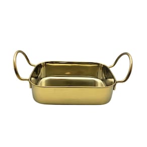 Este linda mini travessa para servir dourada em aço inox fineza irá agregar beleza e elegância no seu ambiente O item é produzido em aço inox de alto padrão. O dourado das peças fineza não são pinturas e sim são adquiridos através de uma nova tecnologia chamada de pvd deposição física de vapor onde o nitreto de titânio adere no inox, dando o tom dourado nas peças. Portanto, os produtos fineza são produtos de qualidades únicas e exclusivas, pois o dourado aumenta a durabilidade do inox evitando mais ainda o enferrujamento e desgaste das peças. O dourado não sai e não descasca com o passar do tempo desde que as recomendações abaixo sejam seguidas Contém: 1 mini travessa para servir dourada em aço inox fineza Dimensão total do item com as alças: comprimento 22,3cm x 11cm de largura x 9cm de altura Dimensão do item sem as alças: comprimento 17cm x 11cm de largura x 5cm de altura