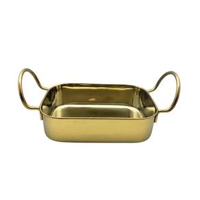 Este linda mini travessa para servir dourada em aço inox fineza irá agregar beleza e elegância no seu ambiente O item é produzido em aço inox de alto padrão. O dourado das peças fineza não são pinturas e sim são adquiridos através de uma nova tecnologia chamada de pvd deposição física de vapor onde o nitreto de titânio adere no inox, dando o tom dourado nas peças. Portanto, os produtos fineza são produtos de qualidades únicas e exclusivas, pois o dourado aumenta a durabilidade do inox evitando mais ainda o enferrujamento e desgaste das peças. O dourado não sai e não descasca com o passar do tempo desde que as recomendações abaixo sejam seguidas Contém: 1 mini travessa para servir dourada em aço inox fineza Dimensão total do item com as alças: comprimento 22,3cm x 11cm de largura x 9cm de altura Dimensão do item sem as alças: comprimento 17cm x 11cm de largura x 5cm de altura