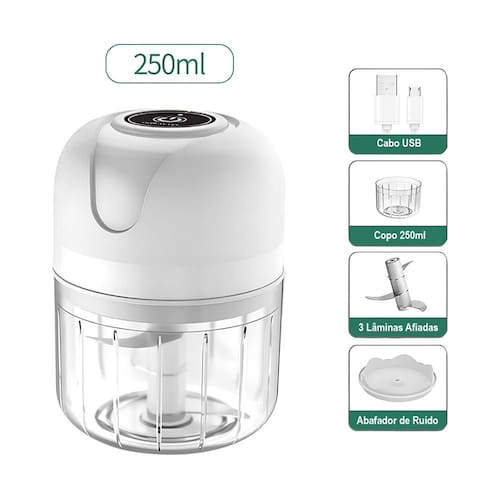 Mini Triturador Processador 250ml Branco USB Recarregável