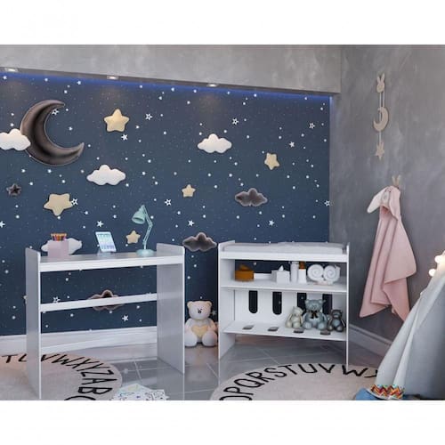 Compacto, funcional e moderno? O Trocador e a Escrivaninha Moisés - MóveisAqui são os moveis perfeitos para os espaços pequenos, o trocador proporciona segurança e conforto aos seus pequenos. Já a escrivaninha proporciona um ótimo espaço para a realização de atividades ou para o divertimento das crianças.