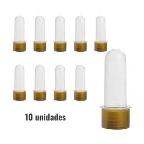 Contém: 10 Mini Tubos de Ensaio Tubetes para Lembrancinhas com Tampa Dourado