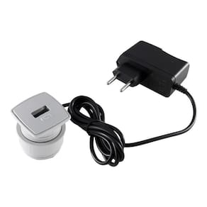 1 saída USB: 5V-2.1A. Alimentação: 100-240V 50/60Hz 0.35A. Fabricação: Termoplástico de Engenharia ABS/PC-VO. Adaptável a qualquer espessura de mobiliário.Tipo