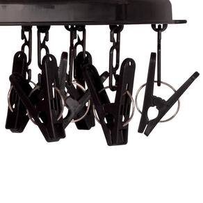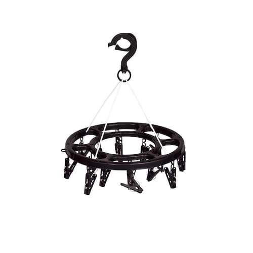 Ideal para pendurar peças pequenas como meias e roupas íntimas, este Mini-varal Redondo, além de muito funcional é prático e pode ser levado a qualquer lugar! Com estrutura em polipropileno, varetas em aço pintado e prendedores em polipropileno e aço, agora também está disponível na cor preta! Em formato redondo, gira de acordo com o vento e possui dezesseis prendedores para pendurar cada peça separadamente. Vem com gancho em estilo mosquetão para prender e suporta até 1,5 Kg de roupas úmidas distribuídas uniformemente. O Mini-varal Preto Mor é o item que faltava na sua lavanderia!