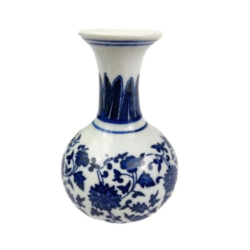 Mini Vaso Azul E Branco Floral 13x8cm Porcelana Chinesa Bola Vem decorar, seja INIGUAL USO: O vaso é um item de decoração que dá todo um diferencial no ambiente. Este lindo vaso, da Inigual Decor, feito em porcelana, com estampa floral, é uma ótima opção para dar um toque Clássico e sofisticado no seu ambiente, podendo ser Utilizado na sua mesa de canto, mesa de centro, centro de mesa do jantar ou em qualquer outro ambiente da sua casa. MEDIDAS: Altura: 14,0 cm / Diâmetro: 9,0 cm / Peso: 290 MATERIAL: Porcelana COR: Azul e Branco ATENÇÃO As folhagens arranjo NÃO estão inclusos nesse anúncio.