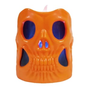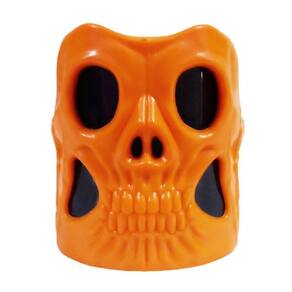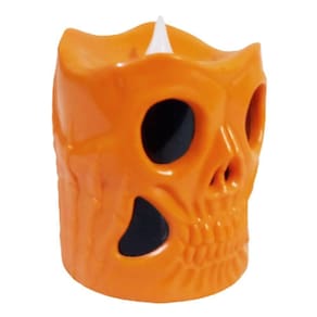 Contém: 01 Mini Vela Laranja Pequena de Caveira com LED Colorido pra Decoração Halloween