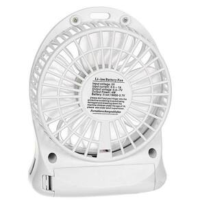 Mini-ventilador De Mesa Branco Eiyo Descrição Mini-ventilador de mesa com bateria recarregável. Conector USB, possibilitando a recarga qualquer fonte de energia com entrada USB. Características do Produto Aviso sobre o produto: Imagem ilustrativa. Modo de velocidade: 3 faixas. Potência de saída max : 4,5 W. Tempo de Trabalho: 2 à 4 h. Especificação da Bateria: 18650li-ion. Instalação da Bateria: Removível. Tempo de Carregamento h : 5. Tamanho: 5,14,11,5polegadas. Peso Líquido: 188 g. Carregador: entrada 100-240vac. Output: 5 v/1a DC. País de Origem: China