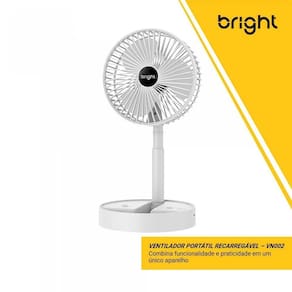 Mini Ventilador de Mesa Bright USB 5W Cód.VN002 Branco Mini Ventilador USB Bright Articulável e Silencioso Sinta-se melhor com esse ventilador de mesa enquanto estuda ou trabalha. Perfeito para o uso do seu cotidiano, podendo ser transportado para qualquer lugar pois seu design pequeno e a alimentação USB facilita para que você possa utilizar aonde precisar Basta ter uma porta USB e pronto Além de ser portátil, ele é silencioso e você também consegue ajustar a direção do mini ventilador. Características:ean: 7897982208363Marca: BrightModelo: Cód.Vn002cor: BrancoVoltagem: DC 5VPotência: 5W3 velocidadesArticuladoRecarregávelDobrávelCarregamento: Type-CMaterial: ABSCapacidade da bateria: 2000mAhRuido: 49db Dimensões da Embalagem:Altura: 17cmLargura: 17cmProfundidade: 9cmPeso: 0,450KgGarantia: 12 Meses