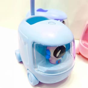 1x Ventilador Porta Lápis [Azul] 1x Cabo USB 1x Cartela de Adesivos