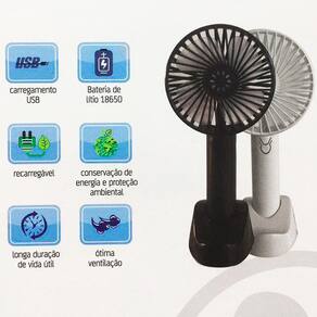 Mini Ventilador Multiuso Portátil Recarregável Usb Preto É muito prático e versátil de usar para se refrescar seu ambiente de trabalho,estudo ou até mesmo secar a sua maquiagem. Pode ser Utilizado na mesa ou prateleira tendo um longo tempo de uso. Carregamento USB Bateria de Lítio 18650 Recarregável Conservação de energia e proteção ambiental Longa duração de vida útil Ótima ventilação Caracteristicas - Medida: 106mm x 210mm x 40mm - Entrada Carga: Dc5v - 1.0a - Versão Bateria: 18650 - 3,7v - Cor: Preto Ean: 3435091039146