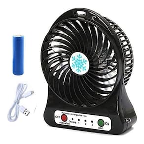 Tamanho compacto e livre de fios, sendo útil para qualquer situação e fácil de instalação. Possui 3 velocidades de ventilação, com motor silencioso. Podendo ser ligado através de bateria de litio recarregável e também por meio de um cabo usb, todos itens inclusos.