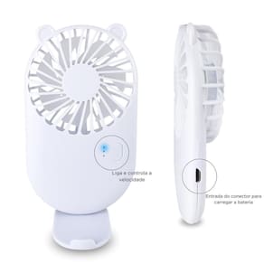 Contém: 01 - ventilador portátil branco 01 - cabo carregador 01 - suporte para o ventilador