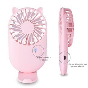 Contém: 01 - ventilador portátil rosa 01 - cabo carregador 01 - suporte para o ventilador