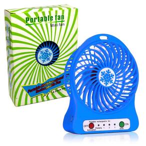 Especificações: Tipo: Mini Ventilador Portátil Fan Modelo: F95 Peso: 90g Peso bateria: 35g Material estrutura e pás: Plástico resistente Dimensões aproximadas ALP: 14cm x 10,5cm x 3,4cm Paletas: 4 Conexão: USB Entrada: 5V 0.5 a 1A Saída: 5 a 9V Potencia: 4,5W Bateria: lítio 18650 3.7V Velocidades: 3 Lâmpada: Sim Tempo de recarga: até 5 horas Cor: Azul