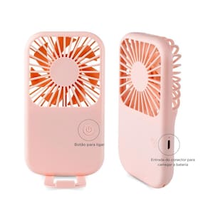 Contém: 01 - mini ventilador rosa 01 - cabo carregador 01 - suporte para o ventilador