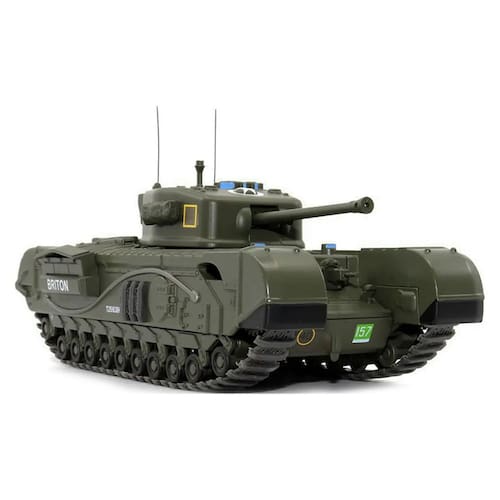 Escala 1:43: Perfeita para colecionadores e fãs de história militar, com tamanho ideal para ser exibida em qualquer lugar. Reprodução fiel do Churchill Mk.VII: Captura o design robusto e imponente do tanque real, com seu casco blindado, canhão de 75 mm, metralhadoras e suspensões resistentes. Marcas de batalha: Inclui marcas de desgaste e pintura descascada, recriando a aparência real do tanque após batalhas intensas. Detalhes realistas: Inclui antenas, faróis, escotilhas, periscopos, esteiras de borracha macia com detalhes de rolamento e marcas no solo, e decalques com o nome "Briton" e o emblema da 34ª Brigada de Tanques do Reino Unido. Torre móvel: A torre do tanque gira livremente, permitindo que você posicione o canhão em diferentes ângulos. Figura do comandante: Inclui uma figura em miniatura do comandante do tanque, vestindo uniforme militar completo da época.