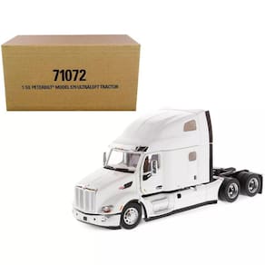 Novo modelo fundido em escala 1/50 do modelo fundido sob pressão Peterbilt 579 UltraLoft Truck Tractor White "Transport Series" da Diecast Masters. Caixa totalmente nova. Pneus de borracha de verdade. Produto oficial licenciado. Interior detalhado, exterior. Possui capô e portas que abrem. Feito em metal fundido com algumas peças de plástico. Embalagem da série Transport: Embalagem premium estilo caixa deslizante impressa com gráficos coloridos e especificações de caminhões e reboques reais, um nível de embalagem que os colecionadores passaram a valorizar em todos os produtos Diecast Masters.