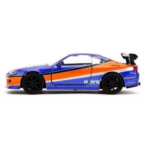 Miniatura de carro 2001 Nissan Silvia S15 do filme Velozes e Furiosos, na escala 1:32. Produzida em metal com detalhes em plástico, apresenta alto grau de detalhamento, pneus emborrachados, abertura das portas e pintura na cor azul e laranja. Fabricante: Jada Ref.: JAD34446 Código Barras: 801310344460 Idade recomendada: Acima de 3 Anos Dimensões da Embalagem AxLxC : 15X7X8cm do Vendedor: 7 dias do Fabricante: 3 meses Homologação Inmetro: IP-BRI-0917/2021-02 Marca: Não Informado