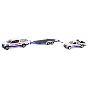 Este conjunto da Greenlight une força e estilo em uma composição voltada ao universo das corridas e transporte automotivo. Composto pela moderna picape Silverado 1500 de 2023, o clássico Chevy S-10 Baja de 1989 e um trailer plataforma, o kit faz parte da Série 5 da coleção Racing Hitch & Tow e é ideal para colecionadores que valorizam ação e autenticidade em escala 1:64.