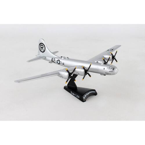 Miniatura aviao bombardeio daron usa af b-29 superfort 1/200 Cor: cinza O b-29 superfortress era um bombardeiro pesado de quatro motores movido a hélice e uma das maiores aeronaves usadas durante a segunda mundial. um bombardeiro avançado para a época, suas características incluíam torres de metralhadoras controladas remotamente e uma cabine pressurizada que permitia o vôo em grandes altitudes. notoriamente, o enola gay foi o b-29 que lançou a primeira bomba atômica, conhecida como little boy, sobre hiroshima no japão. também participou do segundo ataque atômico sobre nagasaki. está bem estabelecido que o enola gay ajudou a pôr fim à segunda mundial na frente do pacífico. este modelo de avião de metal fundido vem em escala 1:200 com suporte de plástico Medidas: Comprimento: 15 cm Envergadura: 20,63 cm Marca: Não Informado Ean: 830715002996