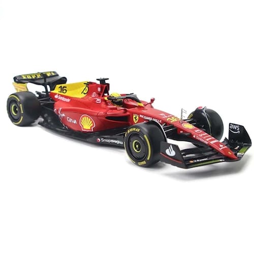 Miniatura Bburago Ferrari F1-75 F1 2022 Charles Leclerc 16 1/18 c/ Piloto