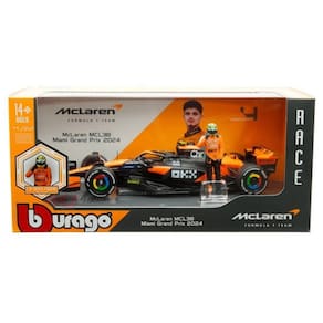 Miniatura Bburago Miami Grand Prix McLaren F1 MCL38 2024 Lando Norris 4 1/24 c/ Boneco
