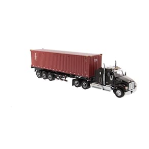 Detalhes do caminhão: • Réplica de metal fundido • Interior detalhado da cabine • Cor da pintura autêntica• Reboque e contêiner com chassi removível• Compartimento do motor detalhado • Capô e portas de abertura