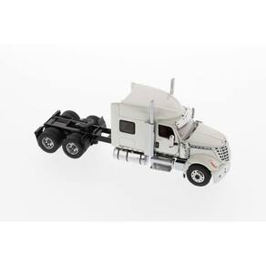 Modelo licenciado Genuine International® · Construção pesada em metal fundido · Espelhos retrovisores detalhados, escapamentos retos e curvos, pára-lamas, barra de luz no teto · Interior da cabine apresentado com precisão · O capô abre para revelar detalhes do motor · Cabine longa com chassi de eixo tandem, incluindo detalhes da transmissão · Quinta roda giratória funcional