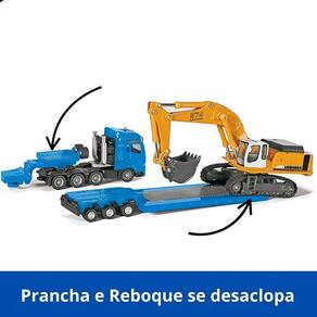 Miniatura Caminhão Prancha MAN e Escavadeira Liebherr 1/87 Cor: azul