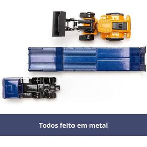 Miniatura Caminhão Prancha Man Pá Carregadeira JCB Siku 1/87 Cor: azul