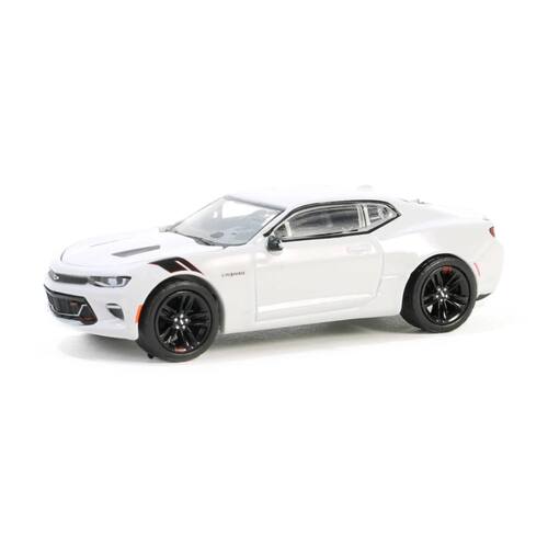 Este modelo da Greenlight representa o poderoso Chevrolet Camaro SS de 2018, um muscle car moderno que combina desempenho agressivo com design esportivo. Integrante da Série 28 da coleção GL Muscle, esta miniatura em escala 1:64 possui aproximadamente 7 cm de comprimento e destaca-se pela pintura branca e acabamento detalhado.
