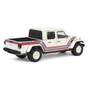 Este modelo da Greenlight representa o Jeep Gladiator 2021 na versão Super Jeep Tribute, integrante da linha Exclusive. Com escala 1:64 e aproximadamente 7 cm de comprimento, esta miniatura presta homenagem ao legado off-road da Jeep, combinando modernidade com elementos visuais clássicos que remetem aos modelos históricos da marca.