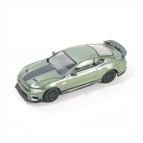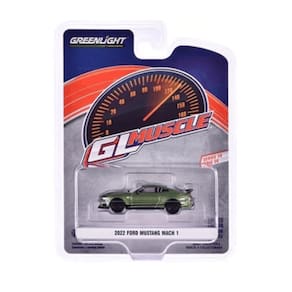Este modelo da Greenlight representa o moderno e agressivo Ford Mustang Mach 1 de 2022, uma versão que resgata o espírito dos muscle cars clássicos com tecnologia atual. Integrante da Série 28 da coleção GL Muscle, esta miniatura em escala 1:64 possui aproximadamente 7 cm de comprimento e destaca-se pela pintura verde vibrante e acabamento detalhado.